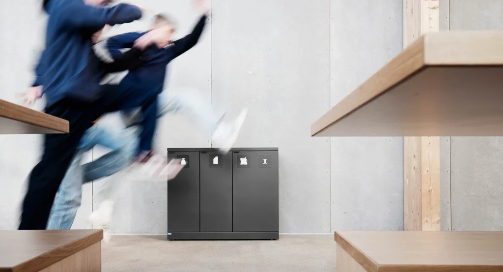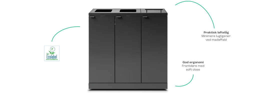 Vi har i mere end 10 år udviklet stilrene og fleksible affaldsløsninger, der passer ind på kontoret, hospitalet, teateret, uddannelsesinstitutionen, skolegården og vi kunne blive ved. Vores mission er at gøre det nemmere at sortere affald. Det skal ikke være besværligt og kræve en ekstra indsats.