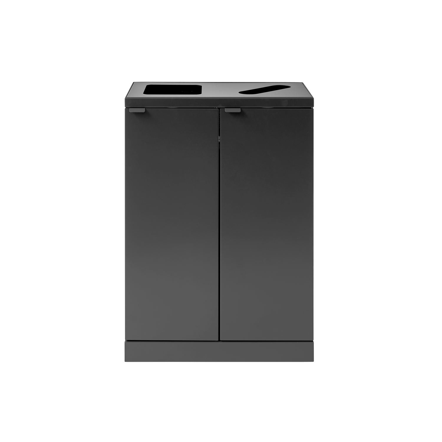 Affaldssystemet er udstyret med frontdøre med soft close for ergonomisk korrekt tømning uden tunge løft. Affaldssystemet er udstyret med integrerede og stærke poseholdere, så posen bliver siddende. Låget skjuler samtidig poserne, så affaldssystemet bevarer et stilrent design. Affaldssystemet er flytbart takket være de monterede hjul, som er skjult bag soklen. Affaldsløsningen leveres med et magnetisk vægbeslag, som den skal fikseres til.