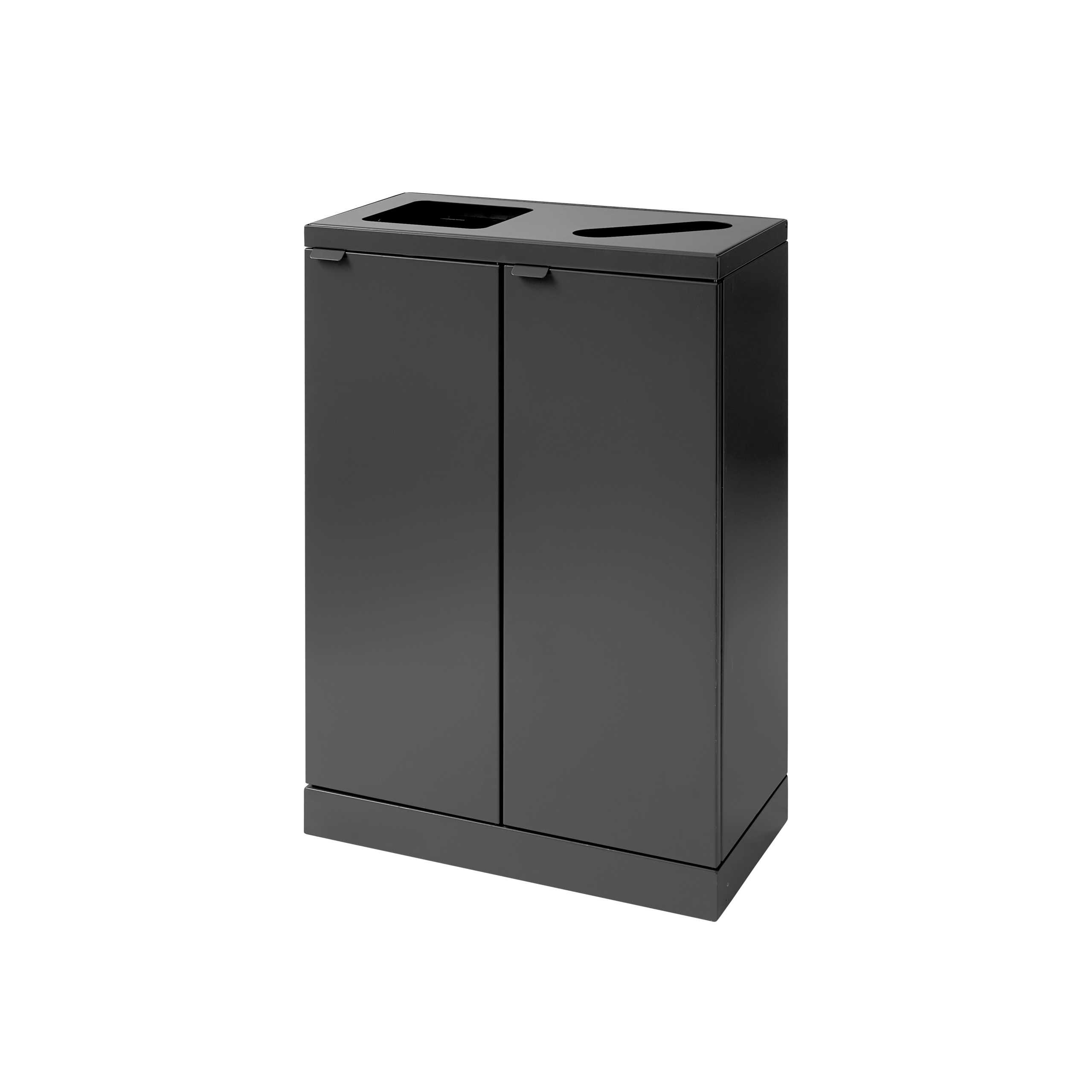 Fleksibelt affaldssystem fra Bica sikrer nem og brugervenlig affaldssortering på arbejdspladsen. Affaldssystemet er designet med 2 fraktioner med 1 åbent firkantet indkast til fx restaffald eller plast og 1 åbent aflangt indkast til papir.