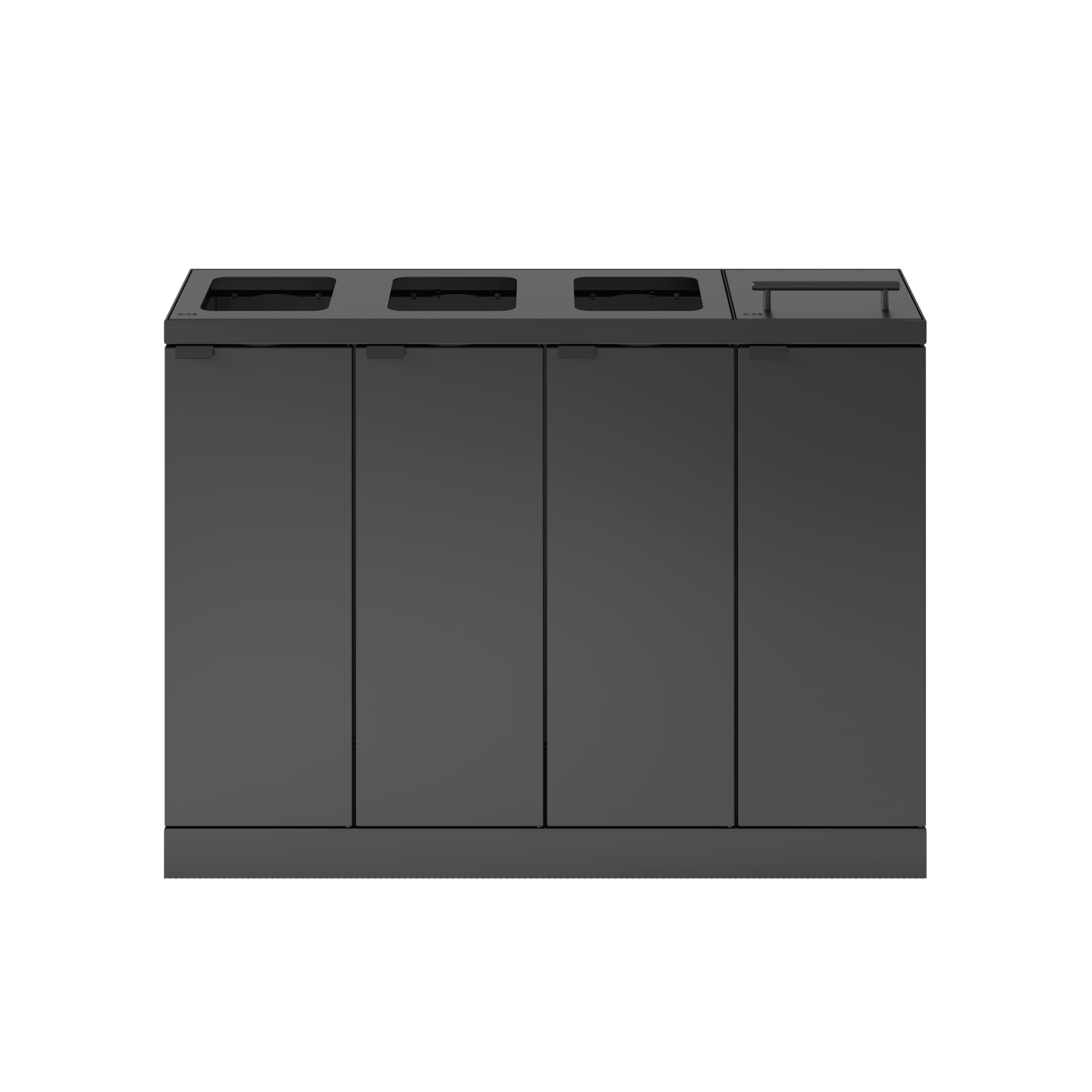 Elegant affaldssortering med låg med 4 inddelinger i stilrent design.