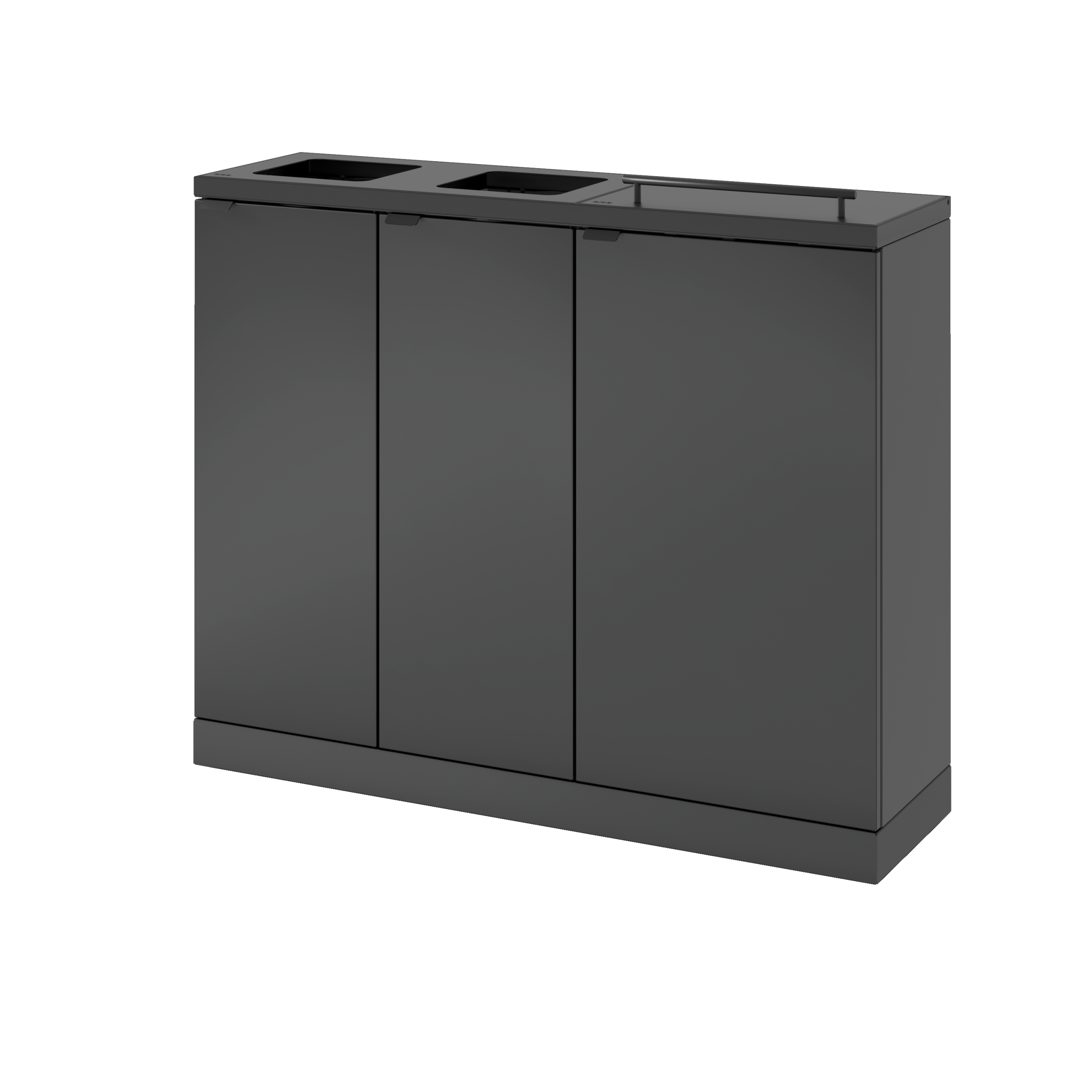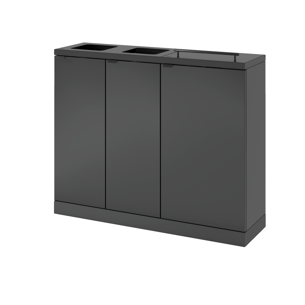 Fleksibelt affaldssystem fra Bica sikrer nem og brugervenlig affaldssortering på arbejdspladsen. Affaldssystemet tillader differentieret volumen i en samlet løsning, som er praktisk, hvis man har brug for sortering i forskellige mængder. Der er monteret hylder i fraktionen 2×45 liter, hvilket giver mulighed for at indsætte inderbeholdere i plast til skarpt affald, hvor posen kan gå i stykker. Denne model er derudover udstyret med et løftelåg på 2×45 liters fraktionen.