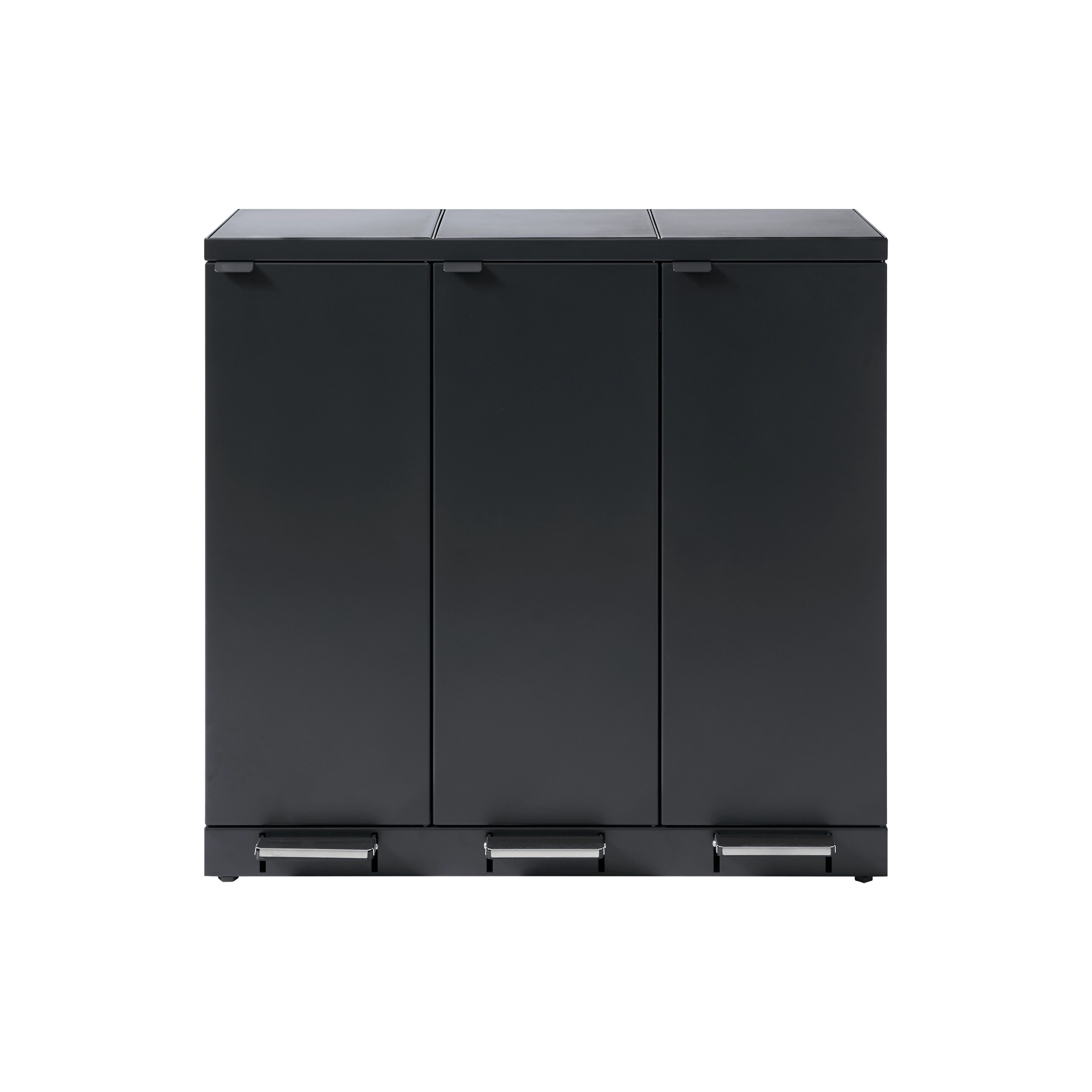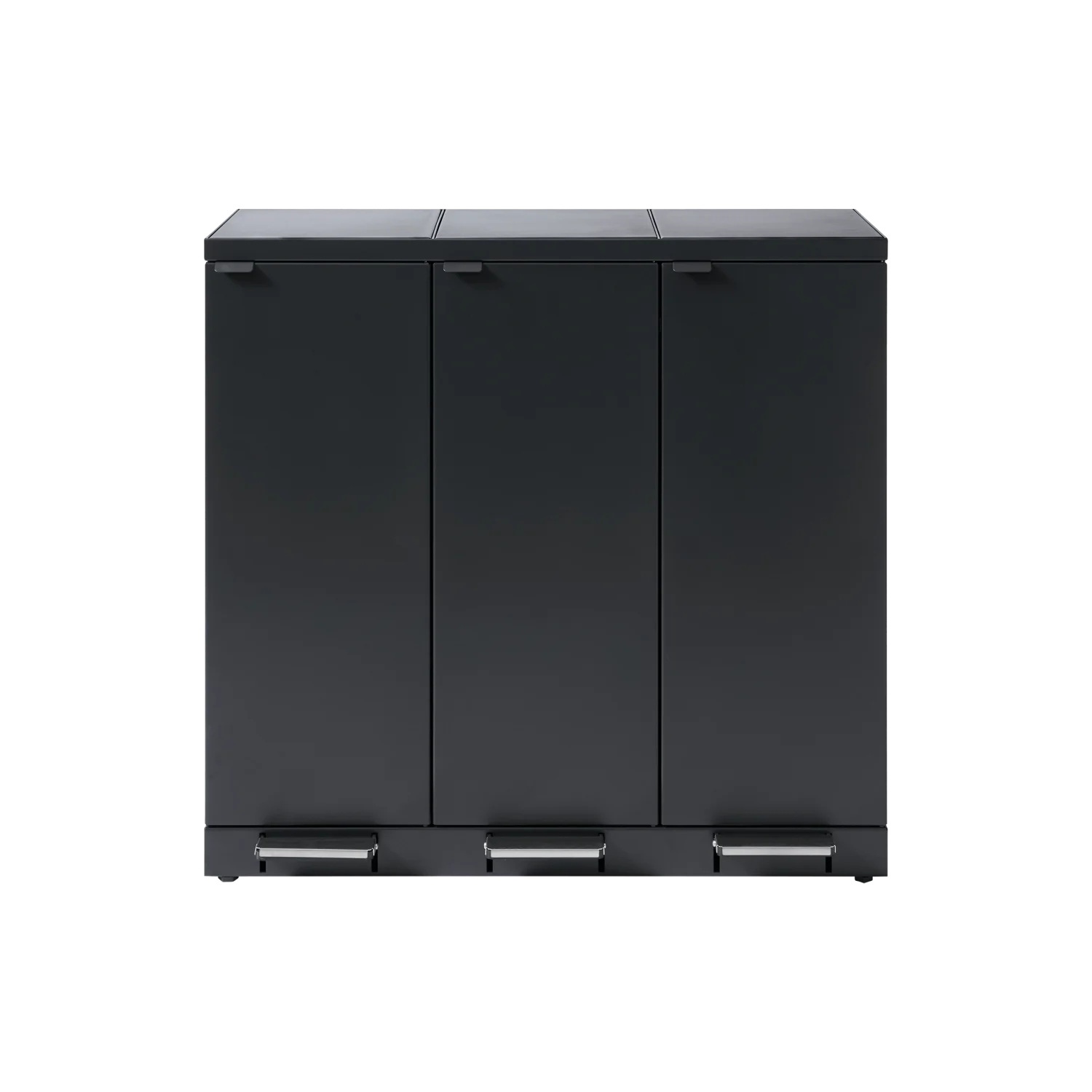 Denne pedalspand er udstyret med frontdøre med soft close for ergonomisk korrekt tømning uden tunge løft. Affaldssystemet er udstyret med en integrerede og stærke poseholdere, så poserne bliver siddende. Der er monteret gasdæmper i låget for lydløs og rolig lukning, og låget skjuler samtidig poserne, så affaldssystemet bevarer et stilrent design. Affaldssystemet er udstyret med justerbare fødder, som er skjult bag soklen.