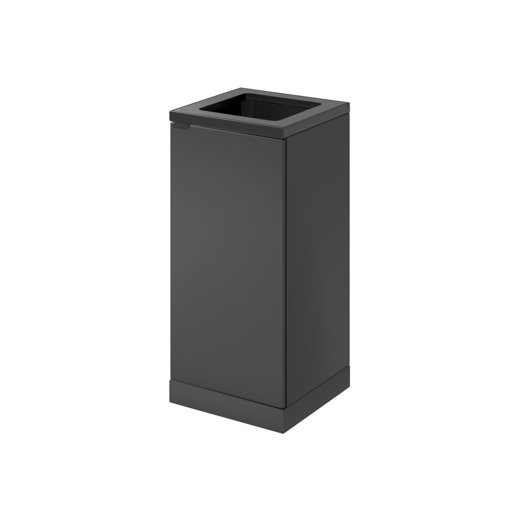 Affaldsbeholderen er udstyret med frontdøre med soft close for ergonomisk korrekt tømning uden tunge løft. Affaldsbeholderen er udstyret med en integreret og stærk poseholder, så posen bliver siddende. Låget skjuler samtidig posen, så affaldsbeholderen bevarer et stilrent design. Affaldsbeholderen er flytbart takket være de monterede hjul, som er skjult bag soklen. Affaldsløsningen leveres med et magnetisk vægbeslag, som den skal fikseres til.