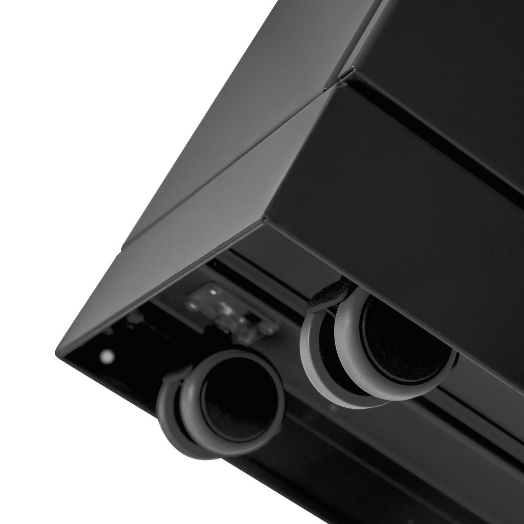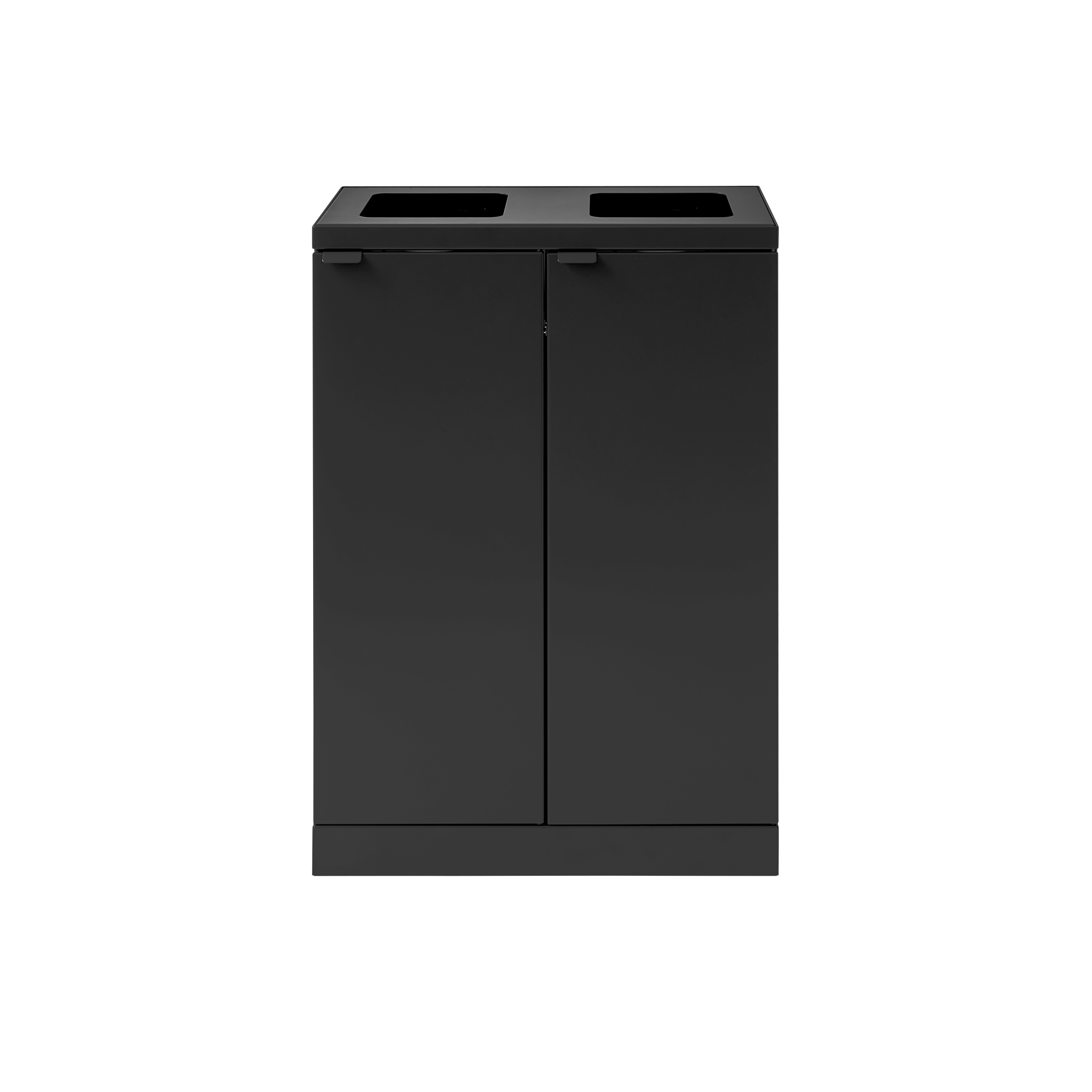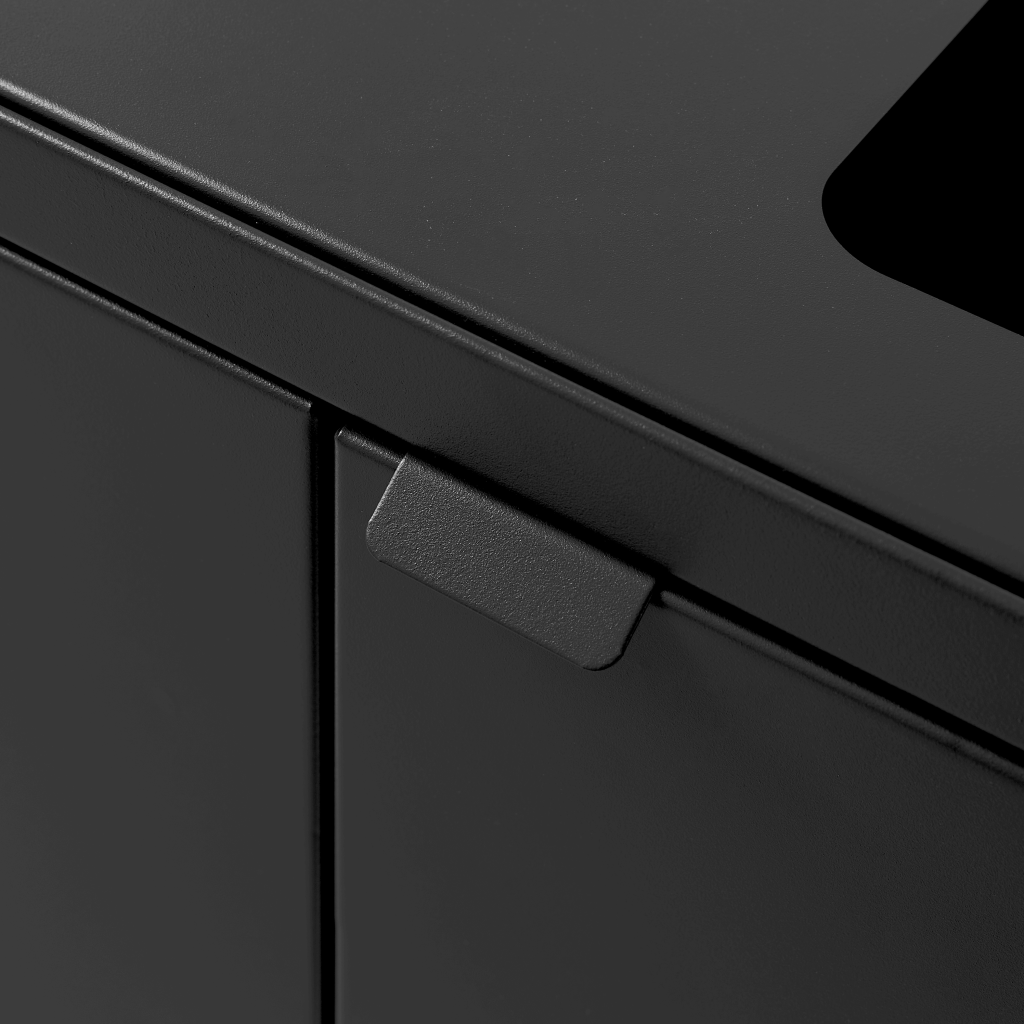 Affaldssystemet er udstyret med frontdøre med soft close for ergonomisk korrekt tømning uden tunge løft. Affaldssystemet er udstyret med integrerede og stærke poseholdere, så posen bliver siddende. Låget skjuler samtidig poserne, så affaldssystemet bevarer et stilrent design. Affaldssystemet er flytbart takket være de monterede hjul, som er skjult bag soklen. Affaldsløsningen leveres med et magnetisk vægbeslag, som den skal fikseres til.