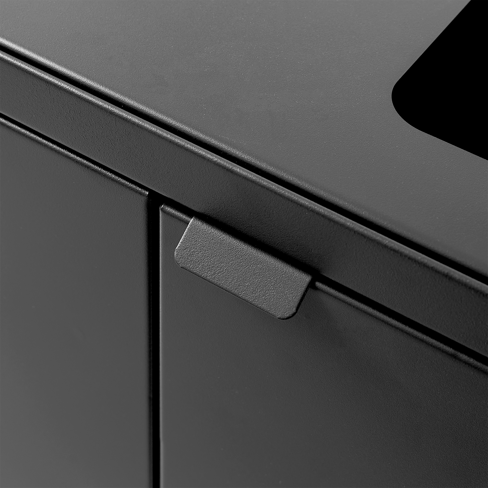 Affaldssystemet er udstyret med frontdøre med soft close for ergonomisk korrekt tømning uden tunge løft. Affaldssystemet er udstyret med integrerede og stærke poseholdere, så posen bliver siddende. Låget skjuler samtidig poserne, så affaldssystemet bevarer et stilrent design. Affaldsbeholderen er udstyret med justerbare fødder, som er skjult bag soklen.