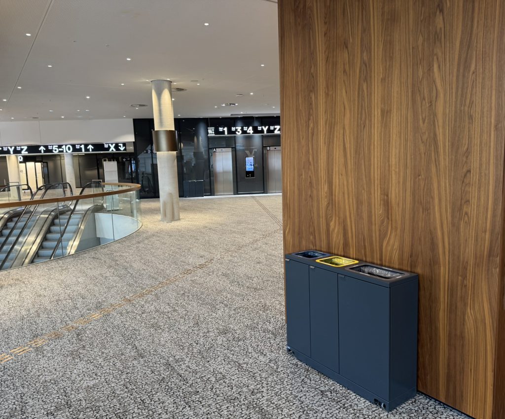 De har derfor brug for en effektiv og brugervenlig affaldsløsning, der stilmæssigt kunne passe ind i de moderne lokaler, og som nemt kan flyttes rundt afhængig af arrangementet.